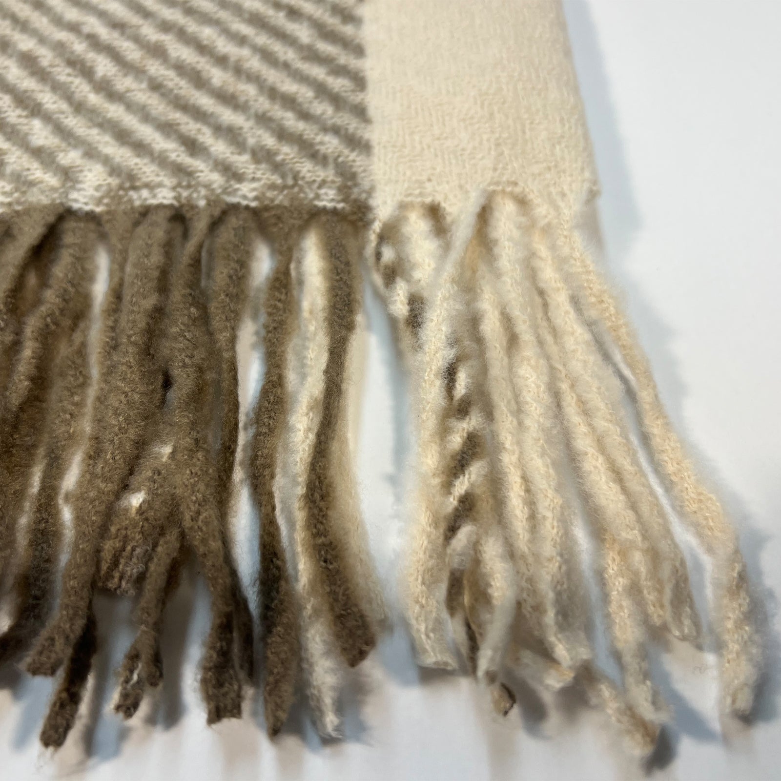 Add a touch of timeless sophistication to your wardrobe with our Beige Plaid Scarf. Designed with a versatile beige plaid pattern, this scarf effortlessly blends style and functionality. Perfect for any occasion, it’s a must-have accessory that complements casual and formal outfits alike.