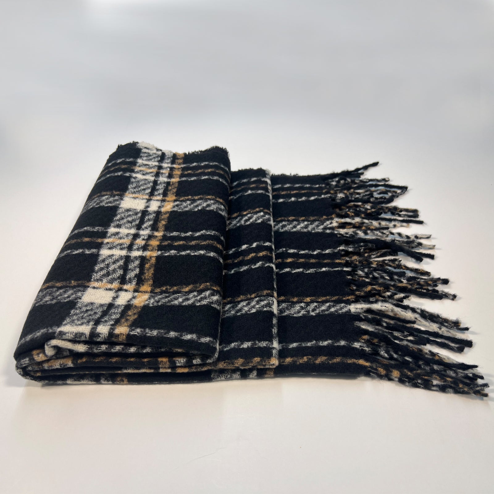 Whether you’re dressing up for an event or bundling up for a cold day, this black and white plaid scarf is the perfect addition to your collection. Wrap yourself in timeless elegance today!
