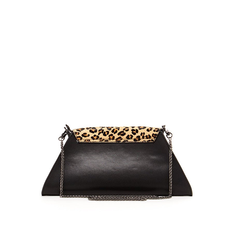 Black Leather Clutch Bag Leopard Unique Evening Purse Women's Handbag
