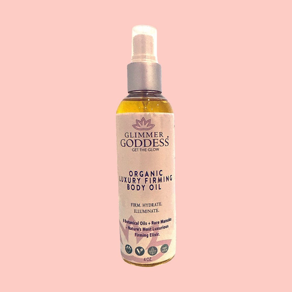 Firm, tighten, and deeply nourish your skin with Glimmer Goddess® Organic Luxury Firming Body Oil — a silky blend of certified organic botanicals crafted for a healthy, youthful glow.
