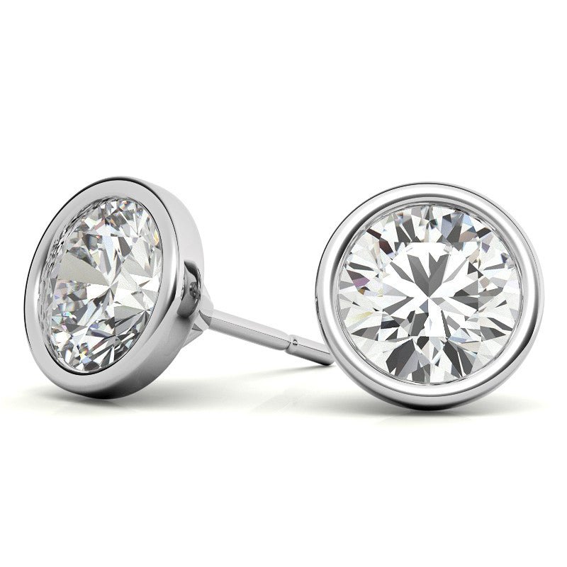 Bezel Round Lab Grown Diamond Stud Earrings in 14K White or Yellow Gold - 2.00 or 3.00 CTW
