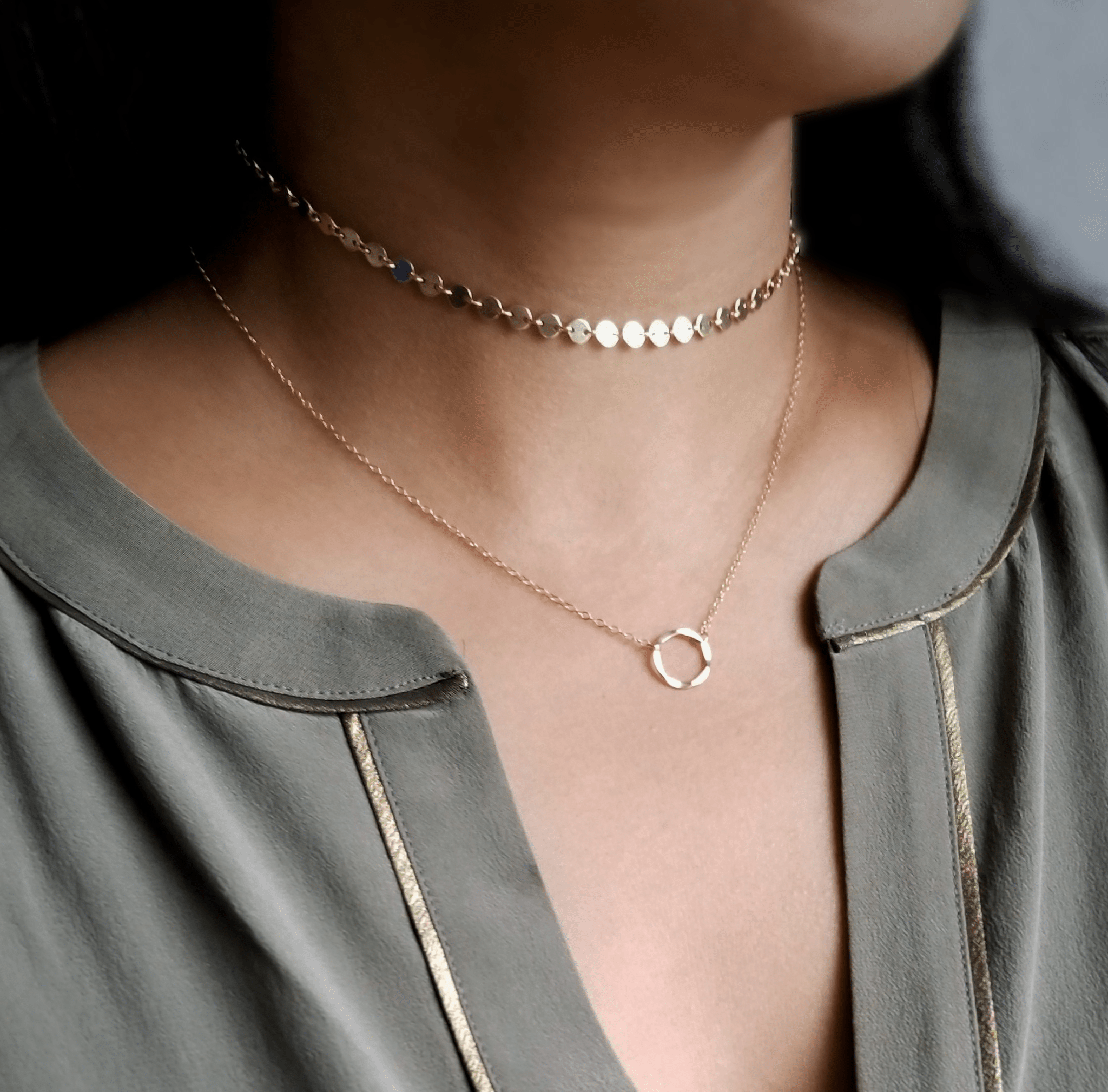 “What comes around, goes around” . The necklace represents the cycle of giving and receiving which we truly believe can change society and is the essence of karma. This pendant may be simple, but it carries a profound and deep message that we hope will always remind us to be kind.