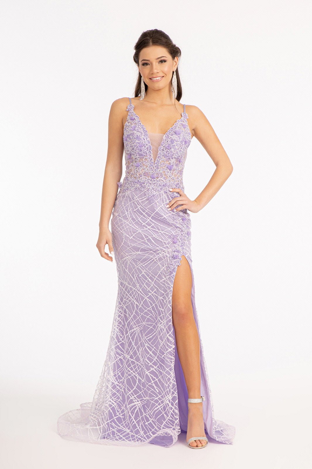 Gorgeous mermaid dress embellished with sophisticated 3-D floral appliques and sparkly beads on sheer bodice. Dazzling glitter is embellished all over the body in splendid pattern. Deep illusion V-neck with sheer sides adds a playful touch, and open sheer V-back with side leg slit offers chic vibe to your look.