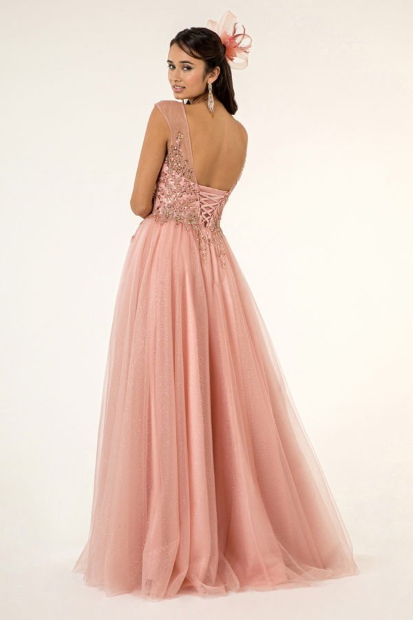 You can't find a perfect prom dress without considering the color of dress! This beautiful pastel-toned mesh dress features sophisticated beads and sequin decorated on bodice.