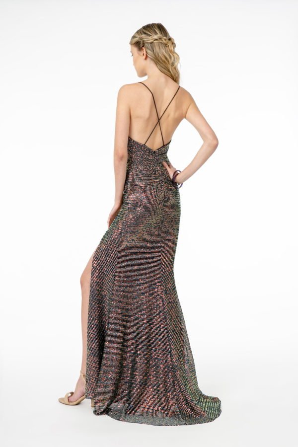 Full Sequin Ruched V-Neck Long Dress w/ Strap Back