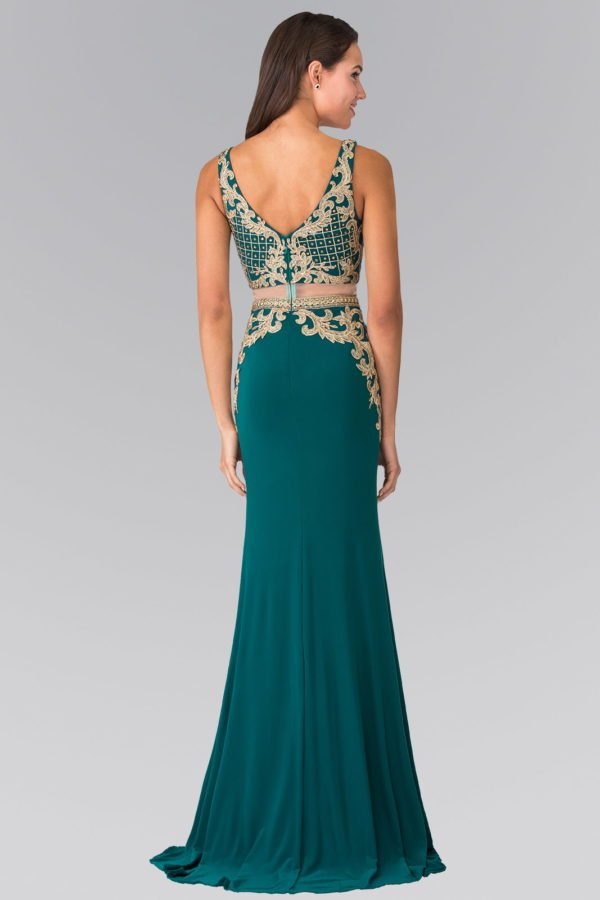 Indulge in the sophistication and elegance of our Mock Two-Piece Embroidered Jersey Long Dress. This stunning piece features intricate embroidery and a mock two-piece design, creating the illusion of a top and skirt ensemble. Crafted from luxurious jersey fabric, this dress is both comfortable and luxurious. Perfect for any formal occasion.