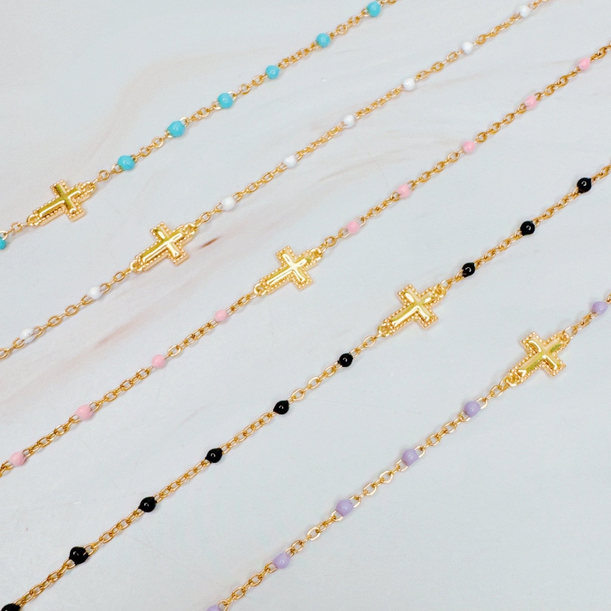 Dainty Color Dots Chain Cross Bracelet
