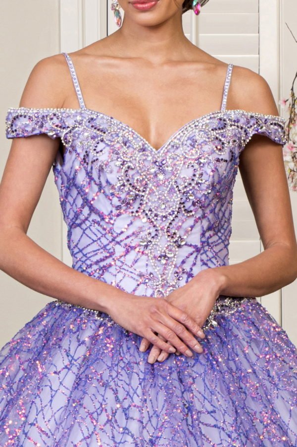 Jewel Embellished Bodice Glitter Mesh Quinceanera Dress - Mask Not Included